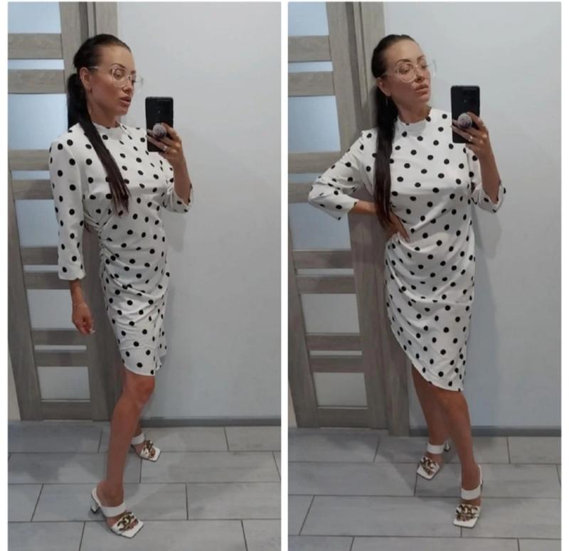 Стильное платье-сарафан в горошек