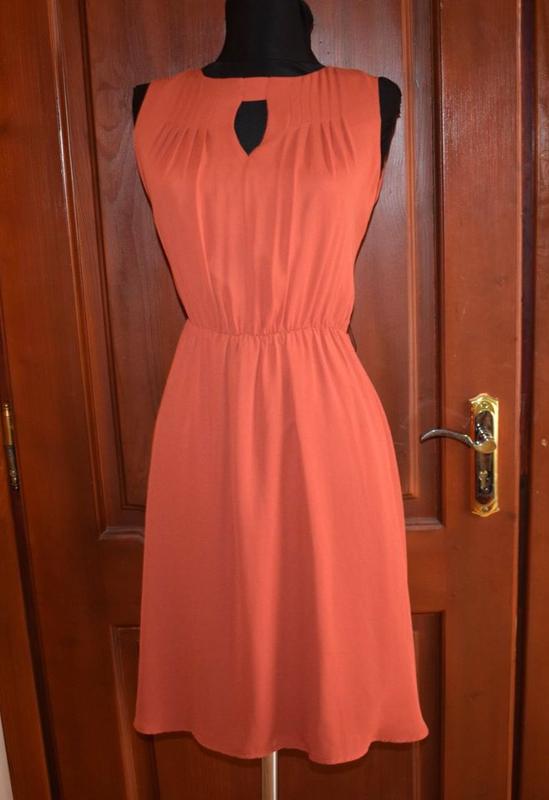 Красивое платье Платье оригинально пошито. Производитель Турция. Цвет таракотовый. Тканина тянеться. стрейч, окружность груди 96 окружность талии:78/110 окружность бидер: 140+- длина изделия:93