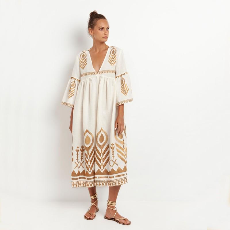 Роскошное дизайнерское платье, изготовленное из 100% льна. Вышивка ручной работы. Приятное классическое сочетание цветов. Лен очень качественный. Крой платья свободный. Стан Новая, без бумажных этикеток🏷🤎