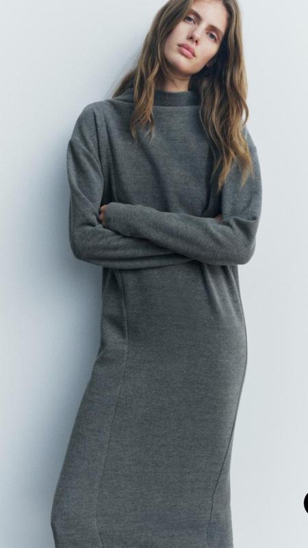 Базовое трикотажное платье серого цвета из коллекции испанского бренда Zara Эластичний, приятный к телу плотный и комфортный материал, который слегка тянется. Силуэт зауженный к низу Длинный рукав. Ворот - цельно - вязанная стойка Отлично сочетается с верхней одеждой Указанный размер - М Замеры: ПОГ - 58 см; Ширина внизу - 52 см. Длина - 135 см (по шву на спине). Длина рукава - 56 см. Ширина плечей - 58 см. Все замеры сделала в ненатянутом виде. Состав: хлопок - 49 %, полиестер - 51%,
