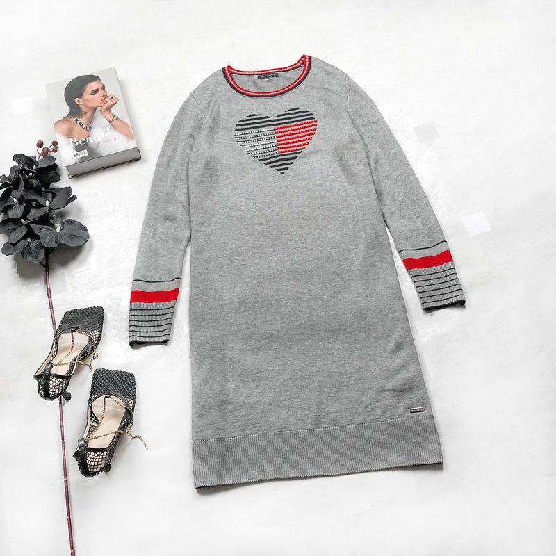 Брендовое платье tommy hilfiger серого цвета со стильным сердцем на груди в стразах