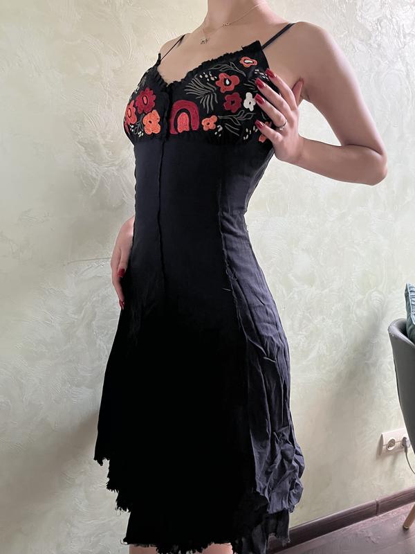 Сукня міді бавовняна чорна з вишивкою цікавого незвичайного крою святкова з квітами на бре...