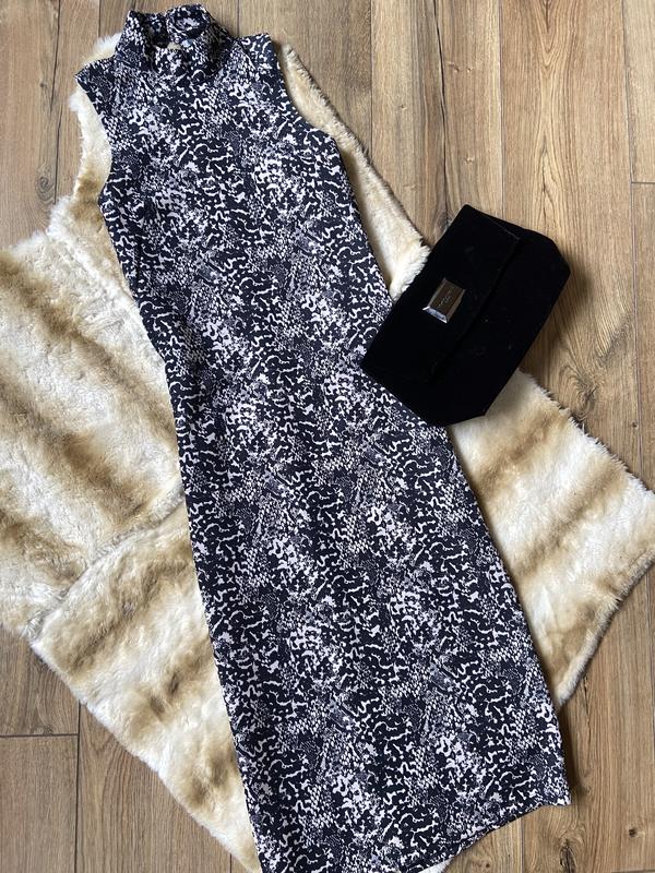 Приталена сукня у зміїний принт довжини міді з відкритою частиною спини
