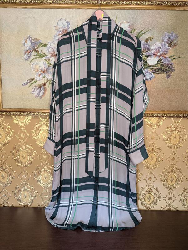 Шелковое платье платье платье шелк миди длинный рукав на пуговицах с поясом серое зеленое...