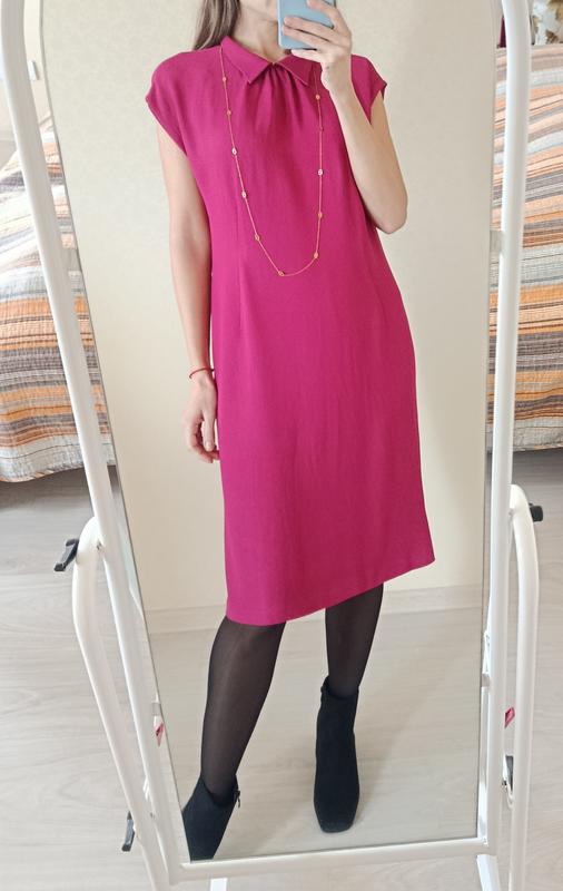 Классическое фуксионное платье от Giorgio Armani. Состояние отлично. Плотная, тянется. Есть подклад. Трошки приталена. Сзади молния. Размер 38. 64% ацетат, 36% вискоза Подклад 100% шелк Длина 100см Пог 50см Пот 44см Поб 50-53см Повна оплата на карту!!