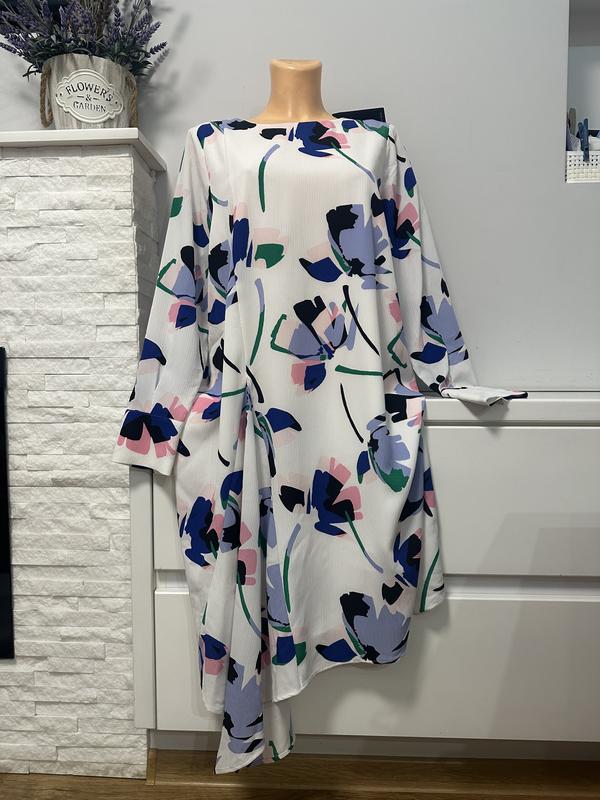 Стильна нова розкішна сукня з яскравим принтом Вільного фасону від M&S,на підкладі Р.16,довжина 105 Пог58 Поб62