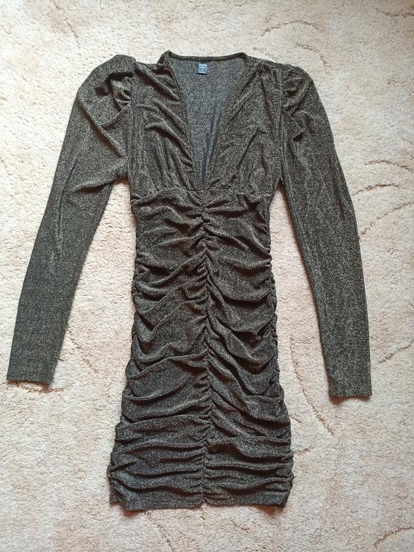 Классное платье в отличном состоянии. Размер указанный М и хорошо сядет на L. (на М большой) Праздничное платье в колено на праздники или Новый год, Рождество... Очень красиво обтягивает фигуру, имеет секси вырез спереди. Блеск за счет металлизированной нити. Состав нейлон 77%, металлизированная нить 18 %, эластан 5% Размер M-L Длина 112 см Плечи 36 см Рукав 46 см Рукав+плече 55 см ОГ 90-96 см ОТ 66-75 см ОС 90-97 см Без дефектов.