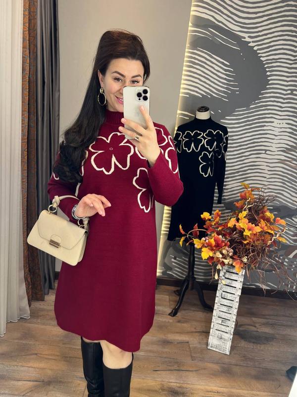 трикотажное платье свободного кроя - это идеальное сочетание комфорта и стиля, модель с круглым вырезом и длинными рукавами дарит ощущение уюта и свободы движений, платье выполнено из мягкого трикотажа, который приятно прилегает к телу, не сковывает движения и подходит для любого типа фигуры, оно декорировано невероятно красивым белым принтом, что делает образ выразительным, добавляя свежесть и элегантность такое платье станет универсальным вариантом для повседневных выходов, прогулок или встреч с друзьями размер единственный 42-48 длина 94 см, объем груди по изделию 104 см тянется до 112 см, длина рукава от шеи 68 см
