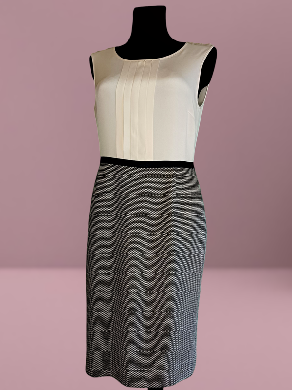 ✨Классика на все времена✨ Элегантное платье-футляр от премиального британского бренда Hobbs London в шоколадно-сливочных оттенках станет любимицей модниц на долгие годы. Классический безупречный крой, сочетание теплого твида на подкладке юбки и шифонового топа-лифа с саржевой лентой на талии, потайная длинная молния на спинке - все это создает гармоничный образ, который привлекает внимание и остается актуальным в любой сезон. Платье невероятно удобное, элегантное и универсальное — для офиса, вечера или особого события. 📏 Размер 12 (UK) НОГ — 51 см НОТ — 41 см НОС — 54 см Пройма - 26 см Длина лифа по спинке - 37 см Длина платья по спинке – 102 см