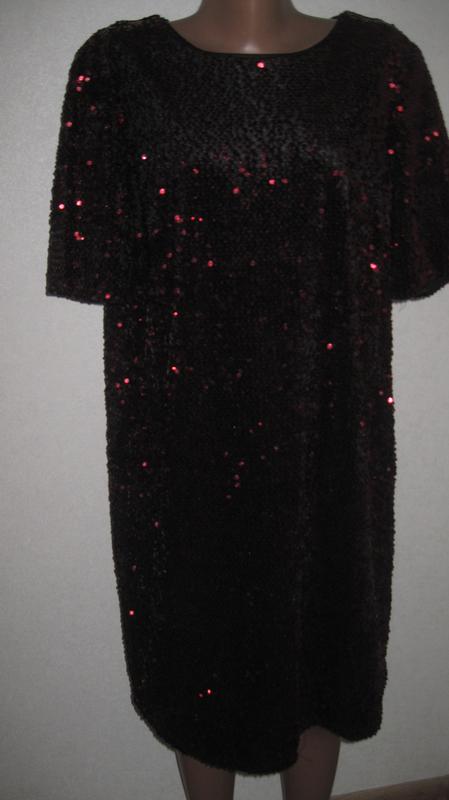 Черное велюровое платье с красными пайетками Monsoon размер18, подкладка полиэстер, тянется, ПОГ57, ПОТ57, ПОБ59, длина 95, идеальное состояние, 490грн