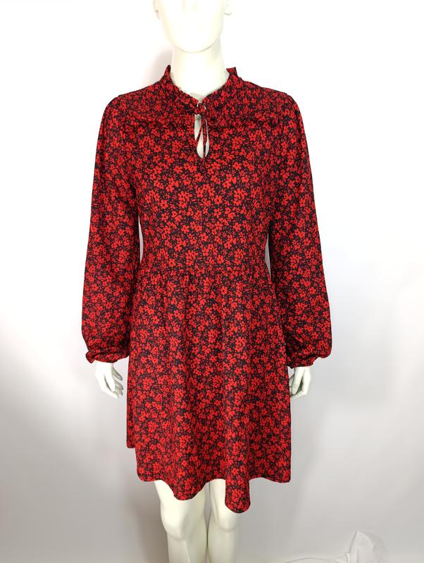 В отличном состоянии , классное , фирменное платье , в ковбойском стиле , в цветочный принт , свободного кроя , с завязками на шее , с рюшами и воланами на груди , воротник стойка . Плечи 35 см , ПОГ 49 см , ПОТ 40,5 см, ПОБ 67 см , Длина рукава 64,5 см , Длина 88,5 см .