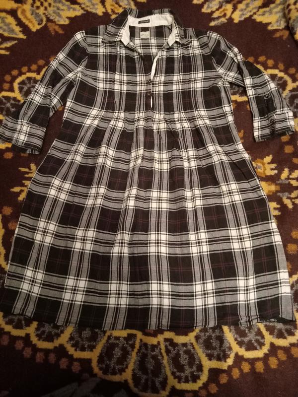 Женское платье из натуральной ткани (хлопок Котон 70%, лен 16%, шерсть14%), очень известного бренда. Ткань, мягкая и легкая на вес. Платье из переда и из зади на встречных в точках до линии груди. Застежка пуговицы, по бокам с карманами. Размер 48.Замеры: Пог 51см, Пот 67см, Поб 73см, плечи 40см длина рукава от плеча 42см, длина по спине 90см.Б/у в идеальном состоянии без дефектов