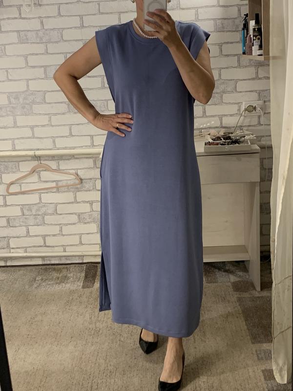 Прекрасна літня сукня, нова по стану, ідеальна для повсякденного використання! Має дві кишені, абсолютно не мнеться! Приємна до тіла, не просвічує. 50% віскози, поліестер і еластан. Розмір М-L По грудях 52, стегна 53, довжина 120 см