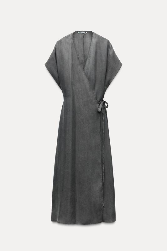Платье средней длины из 100%-го штапельного лиоцелла. С V-образным вырезом, короткими рукавами, асимметричным низом и завязками спереди. Размер XS: ✅ Рукав от горловины - 29 см ✅ ПОГ -46 см (регулируется запахом) ✅ ПОТ -34 см (регулируется запахом) ✅ ПОБ - 54 см (регулируется запахом) ✅ Длина - 134 см ✅Состав: 100% лиоцелл Размер М: ✅ Рукав от горловины - 28 см ✅ ПОГ -49 см (регулируется запахом) ✅ ПОТ -38 см (регулируется запахом) ✅ ПОБ - 56 см (регулируется запахом) ✅ Длина - 134 см ✅Состав: 100% лиоцелл
