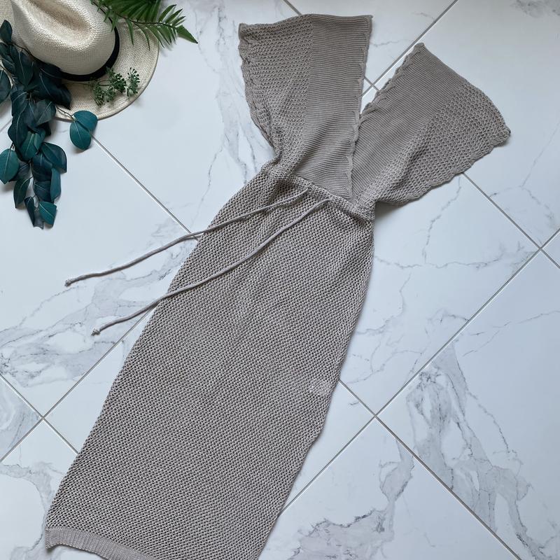 Сукня беж вʼязана міді стан ідеальний, приємна до тіла, розріз на ніжку р м -довжина 125 -нОг 45-50 -нОт 36-42 регул. шнурівка -нОб 48-54 ФОТО НА ТІЛІ НЕМАЄ