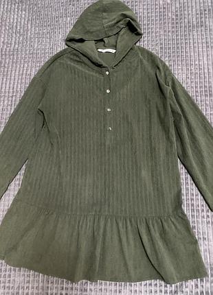 Стильне плаття тканина під вельвет, з капюшоном на ґудзиках, вільного крою, на розмір М-Л, в гарному стані без дефектів. Гарний колір хакі. Можна для вагітних.