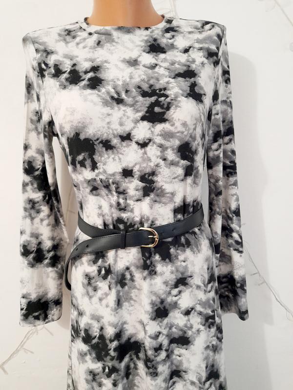 Платье-миди в бело- сером цвете с длинным рукавом от бренда primark
