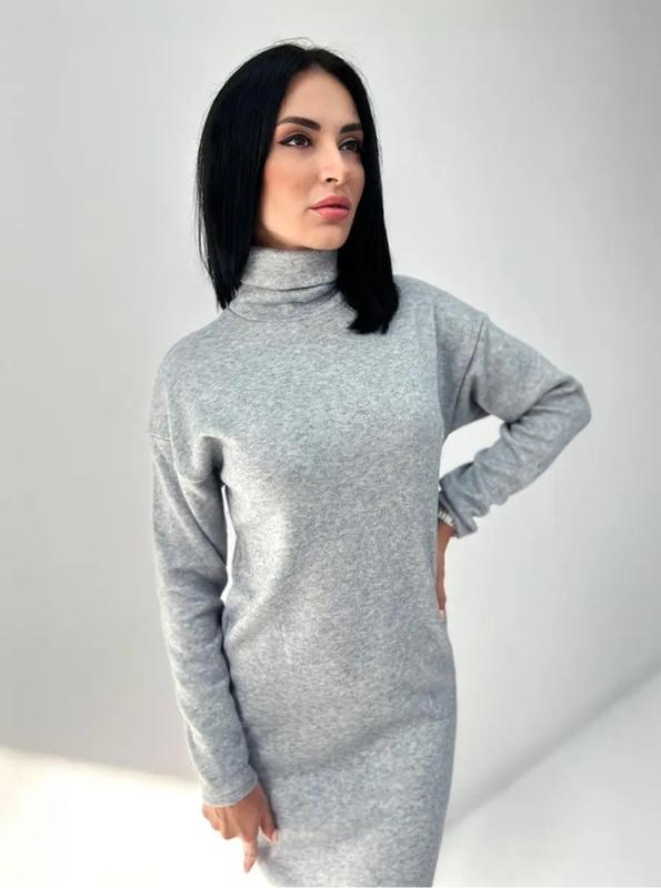 Теплое ангоровое платье с высоким воротом. Прямая модель миди.
