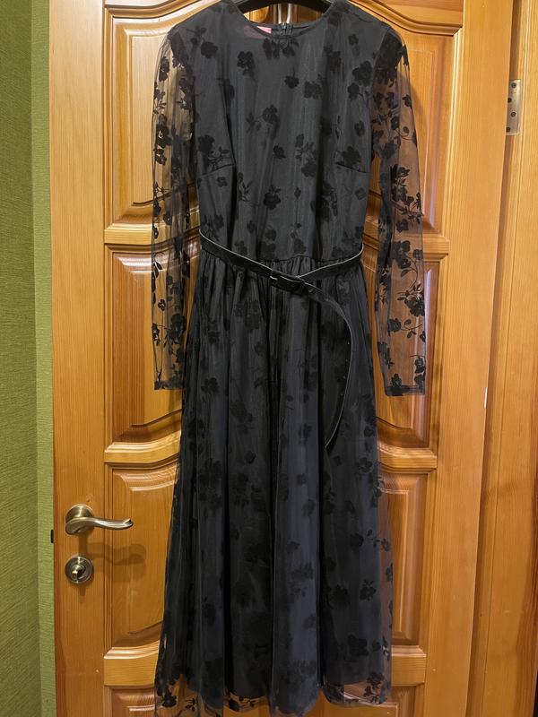Платье вечернее из гипюровой ткани с цветами на подкладке..Состояние идеальное,одевалось 1 раз.Очень эффектное, приятная ткань,очень удобное ,нигде не колет.С бархатным ремешком в комплекте.Длина платья 120 см,ширина в груди 45 см,длина рукава 62 см Размер L. Или 46-48.Сзади молния по спине,удобно одевать.