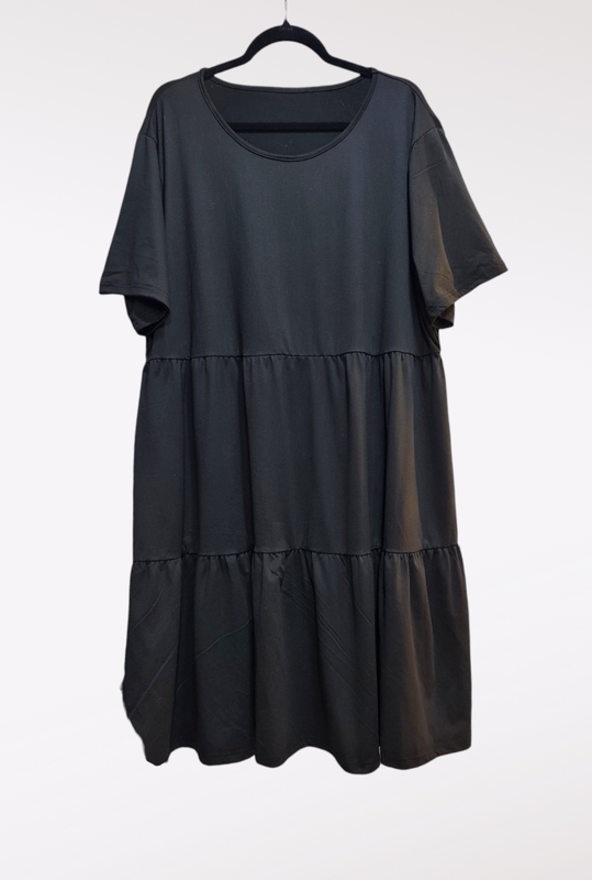 Трикотаж, не просвечивает. Полу плотный., хорошо тянется. Насыщенный черный цвет. Заказа принимаю только с оплатой на карту. ПОГ-67+ тянется Полуобхват по верхнему отрезу , район талії-61+ ПОБ-81+ Длина-104 Плечі-46
