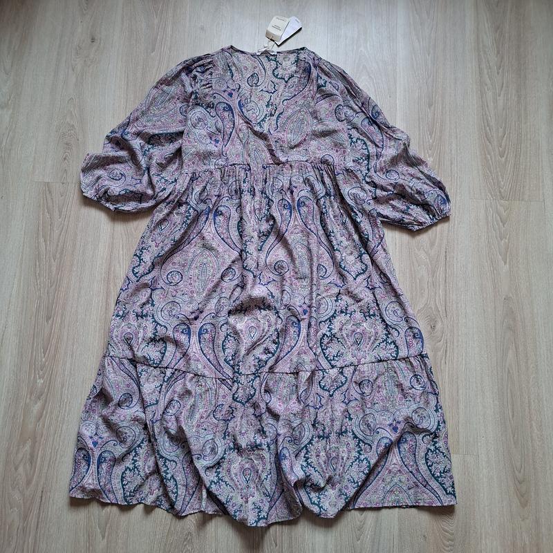 Отпрашиваю после оплаты на карту новая, без дефектов размер л, будет на 14-16 размер пог около 57 см, возможно больше из-за пошива под грудью 56 см