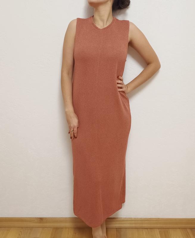 Универсальная вискозная миди-платье от всем известного бренда H&M. Изготовлена она из смесового материала: вискоза в сочетании с полиэстром. Полотно плотное, структурное, несколько имеет вес, очень мягкое, нежное и приятное к телу, с объемной текстурой. Платье имеет базовый прямой крой с длиной миди-макси и распорками по бокам для удобства ходьбы. Для данной вещи подобрали интересный персиково-оранжевый оттенок. Базовая, лаконичная вещь на все сезоны. Для примера прикрепляю официальный сайт бренда (подобное платье будет вценировать на нем около 20-30 фунтов) - https:/www2.************************************************************************************************************************************************ Размер: на наборе указан размер L, и лучше ориентироваться на замеры. Замеры: ПОГ - 49 см, ПОТ - 53 см, ПОБ -55 см, низ - 55 см, длина - 119 см, плечи - 34 см, ширина проймы рукава - 54 см. Состав: 53% полиэстер, 47% вискоза. Параметры модели: ОГ - 84 см, ОТ - 68 см, ОБ - 96 см. Рост - 170 см.