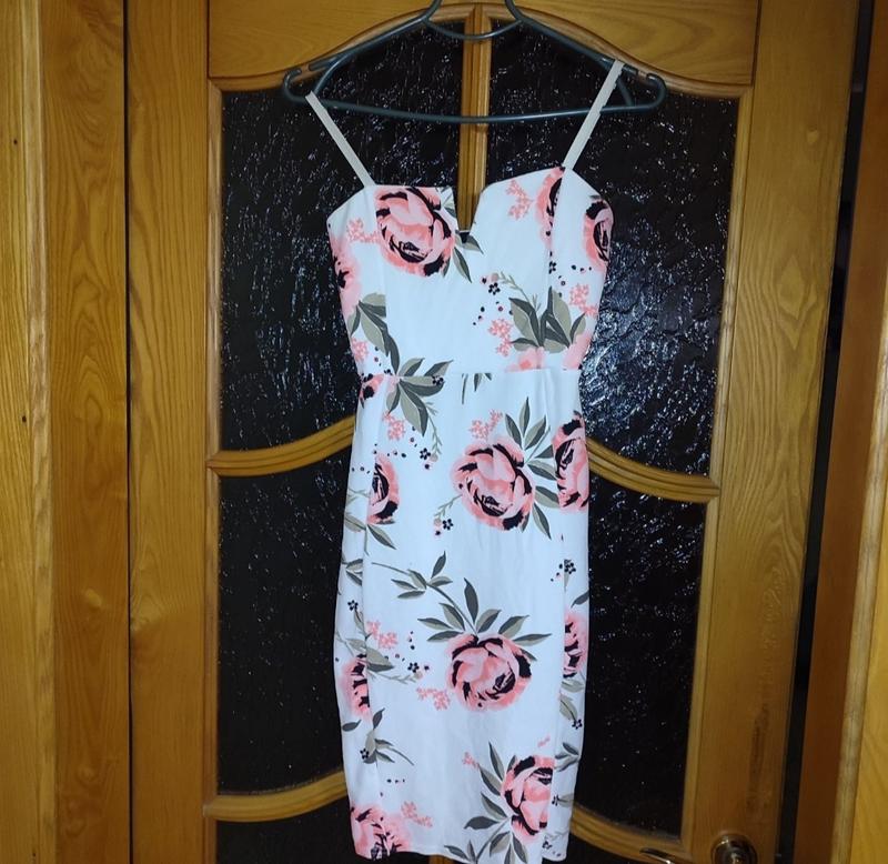 Женское платье на бретелях с вырезом в многоцветной гамме. Размер 10.