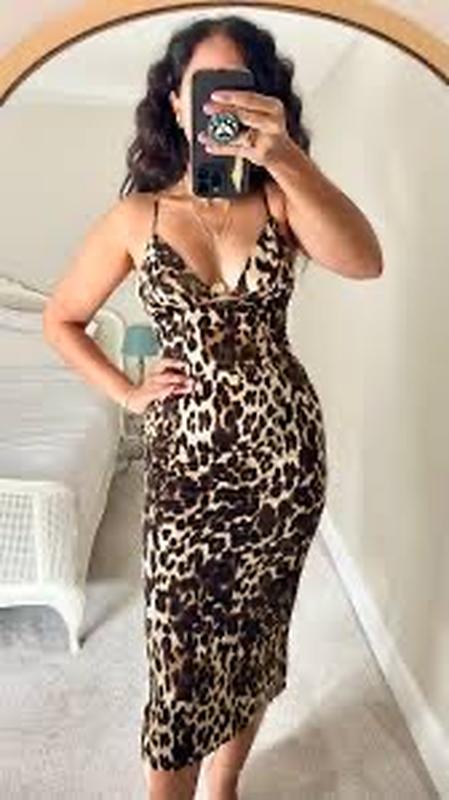 Сукня-комбінація з леопардовим принтом Ефектна сукня-комбінація з сатину з яскравим леопардовим принтом. Має жіночний приталений силует, тонкі бретелі та виріз під грудьми, що додає образу сексуальності й шарму. Легка тканина приємно лягає по тілу й створює плавні лінії. ✨ Деталі: • Матеріал: сатин / шовк штучний • Принт: леопард • Фасон: сукня-комбінація, приталена • Довжина: міді • Особливість: виріз під грудьми, тонкі бретелі • Стан: нова / відмінна Ідеальна для вечірок, побачень або літніх виходів — створює яскравий, упевнений і спокусливий образ.