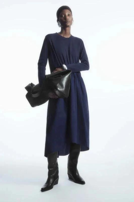 Платье cos темно синего цвета, без бирки но так и не носило ни разу ее, материал коттон, размер М крой свободный, также имеет карманы и талия на резинке, единственный момент с этикеткой (на последнем фото) очень удобное базовое платье.