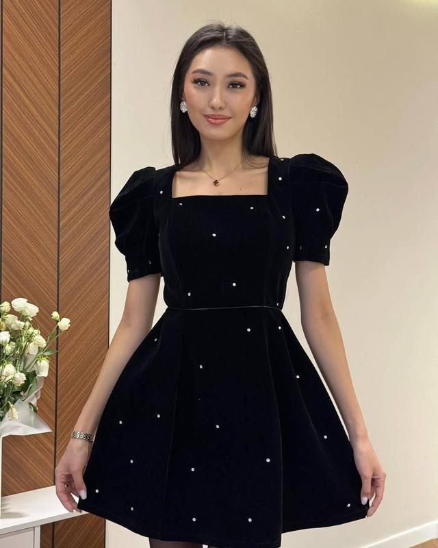 New🩶 Сукня 🔘Мод 1174 🔘Размеры - 42-44, 46-48 🔘Цвета - черный 🔘Ткань - бархат со стразами Изысканное платье с камушками, до праздников и торжественных событий. Мягкая приятная ткань. Юбка солнце-клеш. Сбоку идет на потайной молнии.