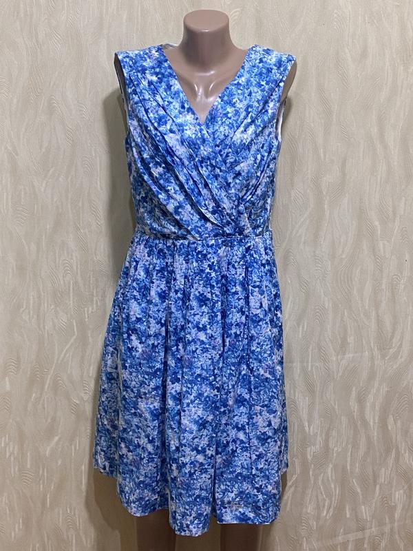 Котонова єлегантна сукня в ідеальному стані. Тканина склад 100% котон. Сукня на підкладці, по спинці блискавка. Розмір написаний 10 , дивіться виміри ПОГ 47см ПОТ 39см ПОБ см довжина по спинці від лінії плеча 99см Надсилаю Новою поштою, укрпоштою. 3947