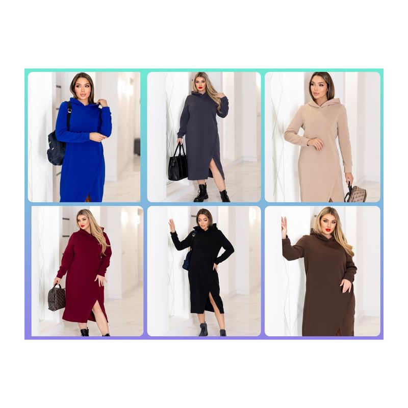 📽СКИНА ВИДЕО ЗА ЗАПИТОМ Теплое трикотажное платье на флисе с капюшоном 🌈Цвета: черный, бежевый, шоколадный, марсала, электрик, графит 📐Размеры: 42-44, 46-48, 50-52, 54-56 🧶Материал: трехнитка на флисе 🪡Замеры: Длина по спинке:111, 114, 115, 117 см Длина рукава:59, 59, 62, 63 см Полуобъем груди:47, 51, 54, 63 см 💕Платье миди в спортивном стиле – это универсальная модель, которая сочетает комфорт и стиль, идеально подходит для активной жизни и расслабленного городского образа. ✔️Оригинальный фасон и асимметричный крой. Такой силуэт создает эффект легкости и движения и обеспечивает комфорт при носке. Асимметрия придает модели стильную динамику, делая ее ярким элементом гардероба. ✔️Теплая и комфортная ткань. Платье выполнено из мягкого трикотажа трехнитка, который хорошо держит форму, практически не мнется и обеспечивает отличную посадку. Подходит для носки в холодное время года благодаря густому начесу из изнаночной стороны. ✔️Большой капюшон добавляет модели спортивный акцент и функциональность, защищая от ветра и прохлады. ✔️Рукава стандартной длины дополнены мягкими манжетами, которые облегают запястья, добавляя удобства и завершенности образу. Они обеспечивают защиту от продувания и делают платье комфортным для ношения в прохладное время года. Теплое платье миди идеально подходит для прогулок, встреч с друзьями или расслабленного отдыха. Модель легко комбинируется с кроссовками, ботинками или массивными сапогами.