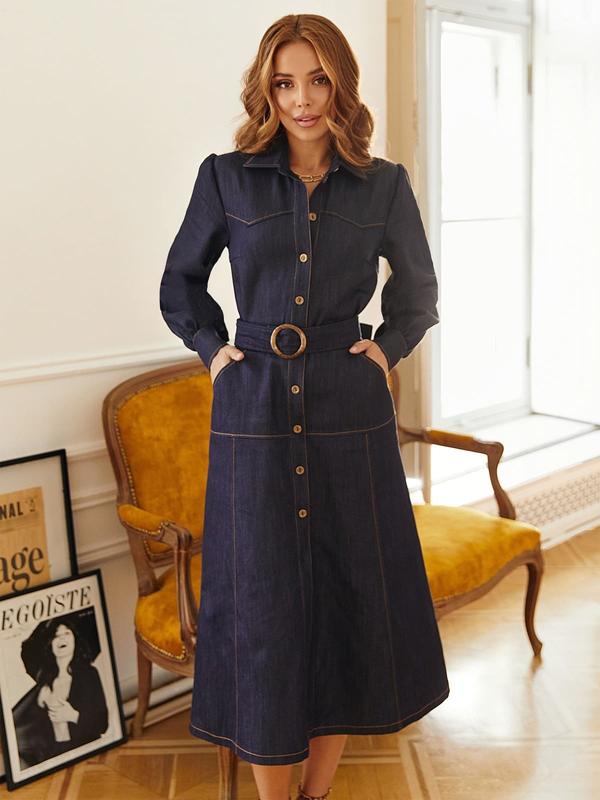 Джинсовое миди платье-рубашка темно-синее | 92617