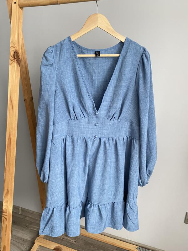 Плаття блакитна сукня-кльош shein curve з v-подібним вирізом і довгими рукавами.