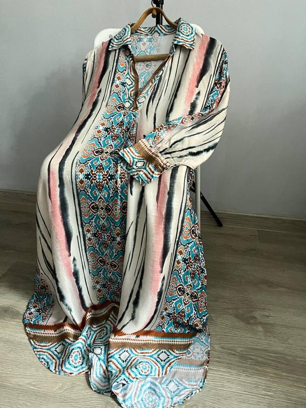 Неймовірна сукня😍 У складі віскоза та шовк Дефектів немає Стан ідеальний Розмір U (універсальний) Довжина 111/118 см Пог 62 см Поб 75 см Рукав від горловини 68 см