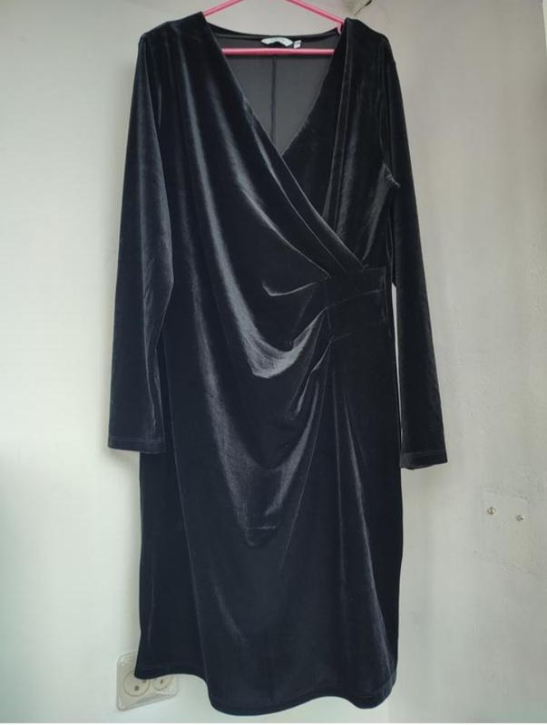 Элегантное черное платье из мягкого, приятного на ощупь бархата 💫 V-образный вырез и легкий запах создают красивый силуэт и визуально стройнит фигуру. Драпировка на талии добавляет изысканности. Универсальный фасон - подходит и для праздничных событий, и для вечерних выходов. Выглядит дорого и стильно ✨ Состояние отличное, без дефектов. длина 103 пог 58 рукав 64 пот 49 очень хорошо тянется