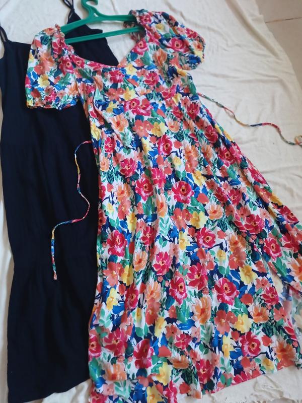 Платье халат в цветочный принт миди большой размер батал с разрезом на ноге