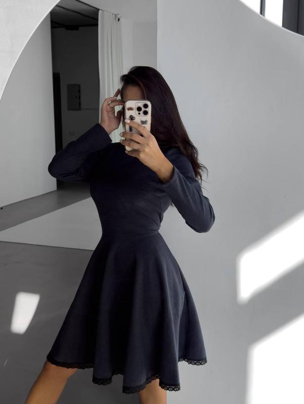 Элегантное платье с длинным рукавом и пышной юбкой. Декорировано нежным кружевом по вороту и низу, подчеркивает талию и создает женственный силуэт. Идеальный выбор как для ежедневных выходов, так и для особых событий🫶 ▪️Артикул: 7083 ▪️Размеры: 42/44 и 46/48 ▪️Цвета: шоколад, темно синий и черный ▪️Тканина: шерсть котон