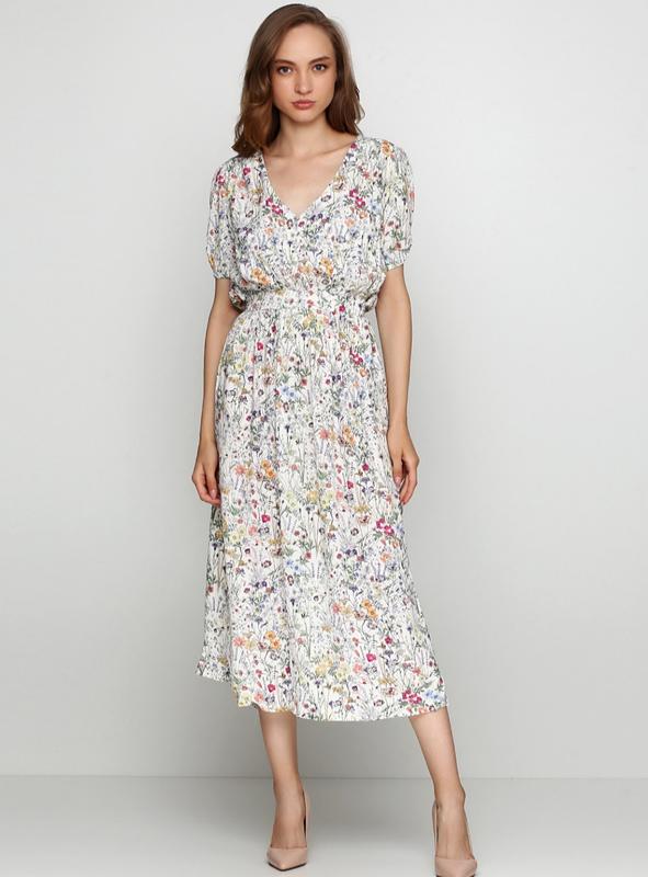 Cукня в цветочный принт известного бренда H&M. Размер на бирке 44 (38). Соответствует 44-46 украинскому размеру. Платье новое, но без бирки. В использовании не была, это видно по внутренним этикеткам.