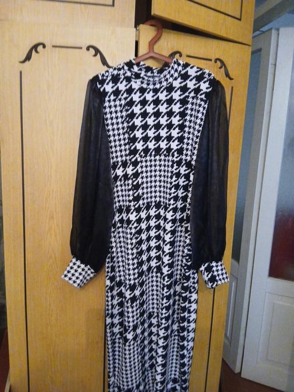 Платье нарядное, НГ 40, НТ 46, НБ 55, Длина 121см, длина рукава 60см. Ткань полистирола, рукава шифон, манжет принт. Без дефектов.