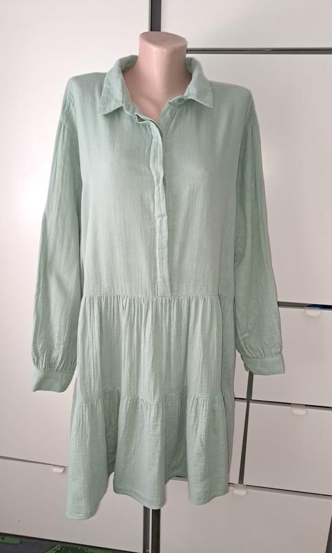 Трендова сукня-батал Primark красивый цвет-мята р-р 20 пог-68 длина-96 плечо/рукав-17/59 ткань-коттон "зимний" для прохладного времени года состояние-идеальный