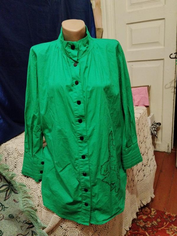 очень красивого цвета платье сорочка.Застегивается на кнопках.Можно носить с поясом.Берки отсутствуют,ткань на щапень котоновая.Размер с,м,л.Есть спереди по низу маленькое пятнишко и на декоре подрапости(переднения фото). опис состояние очень хорошее длина 83 рукав 58 ширина комди 58 шиоина бедер 65