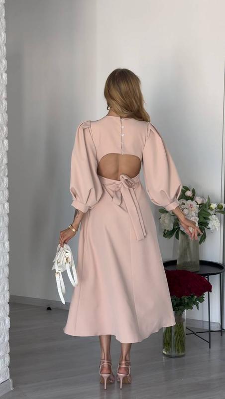 Женское миди платье с вырезом на спине и объемными рукавами