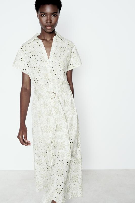 Платье миди с прорезиненной вышивкой от zara, размер xs