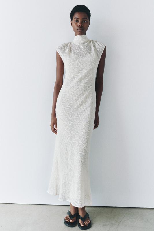 Длинное платье с вышивкой zw коллекция от zara, размер м