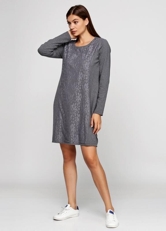 трикотажное платье прямого силуэта, с длинным рукавом декорировано кружевом. длина-92 см ширина по плечам-37 см длина рукава-59 см глубина проймы-22 см полуобхват груди-49 см ширина в районе талии-49 см бедро-59 см ширина по низу-58 см