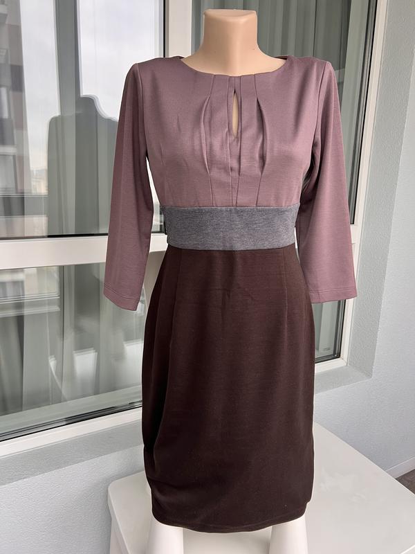 Елегантна сукня-олівець. Довжина міді - трохи нижче коліна. На боковій застібці. З елегантним вирізом на грудях. Тепла щільна тканина - підходить для зимового сезону. Ширина плечей 38 см. Загальна довжина виробу 94 см. ПОГ 45 см ПОТ 37 см. НЕ секонд.