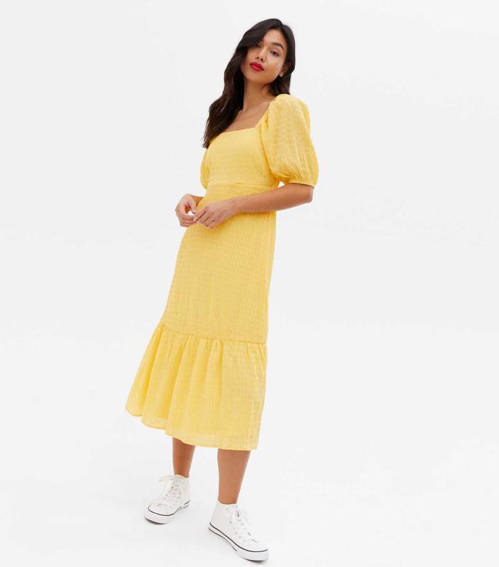 Платье платье мидакси-мини желтое лимонное пышные рукава фонарики new look
