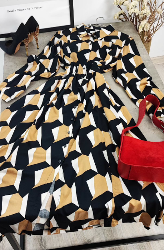 Элегантное платье миди в геометрический принт andcowoman