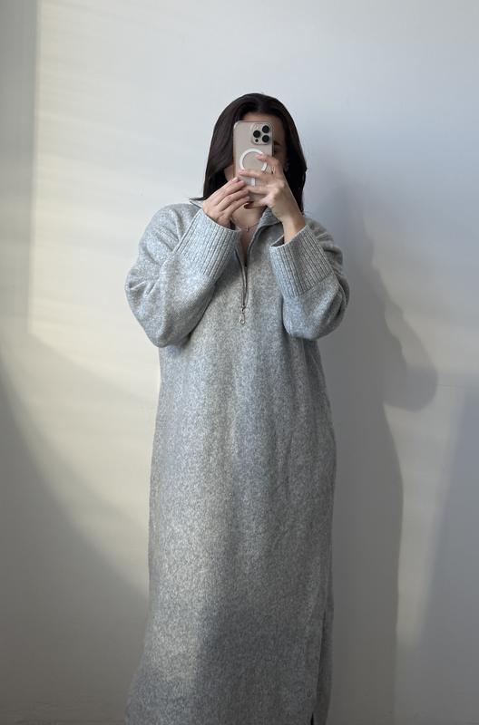 дуже тепла сукня має блискавку високий комір прямий крій, та має внизу розрізи